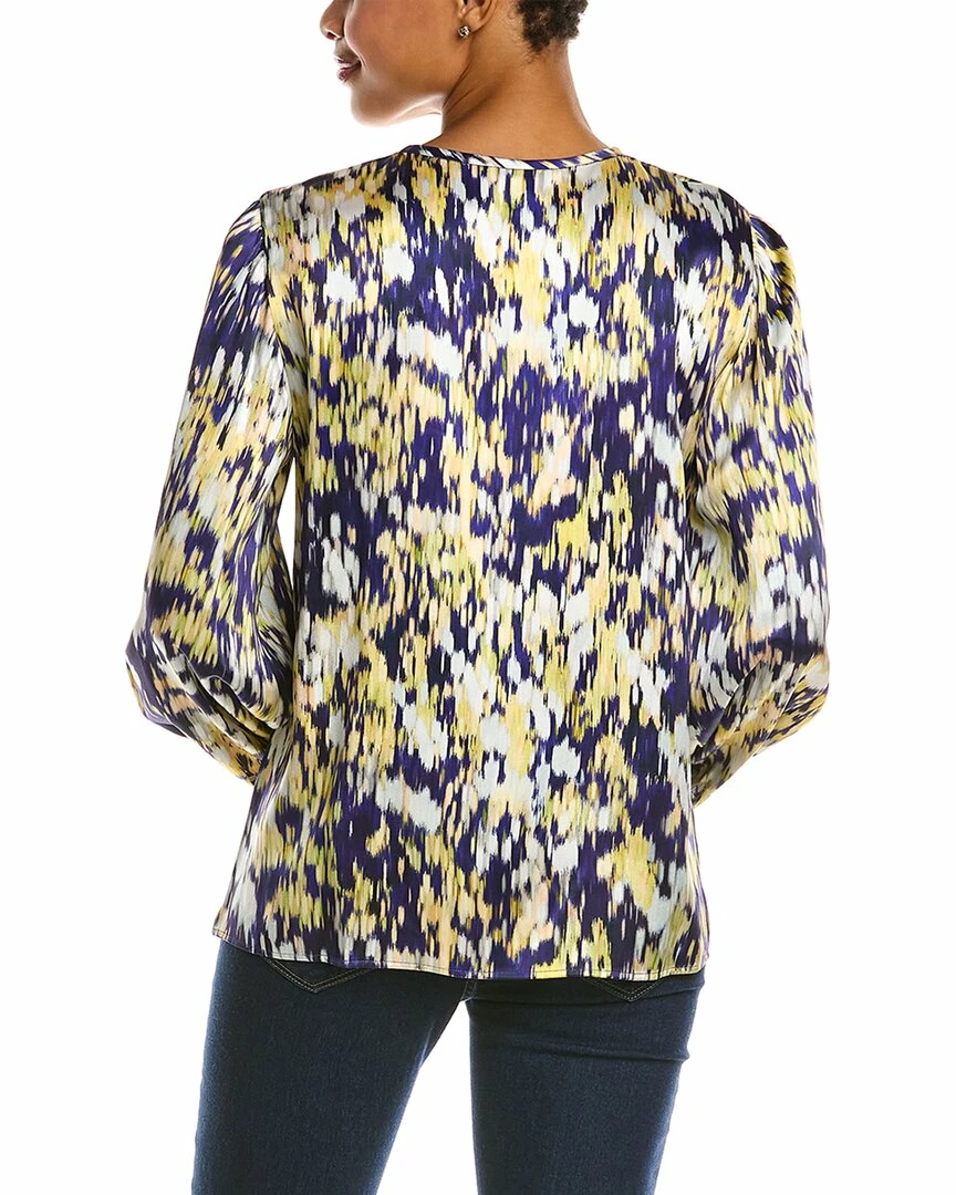 - Autumn Haze Silk Shirt in ink multicolor with blouson sleeves and button cuffs