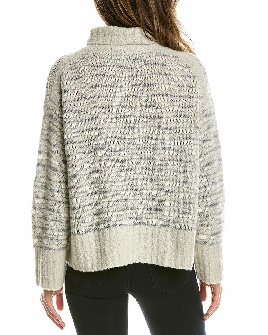 - Chunky Open Stitch Sweater in sea mist multicolor with stand up collar