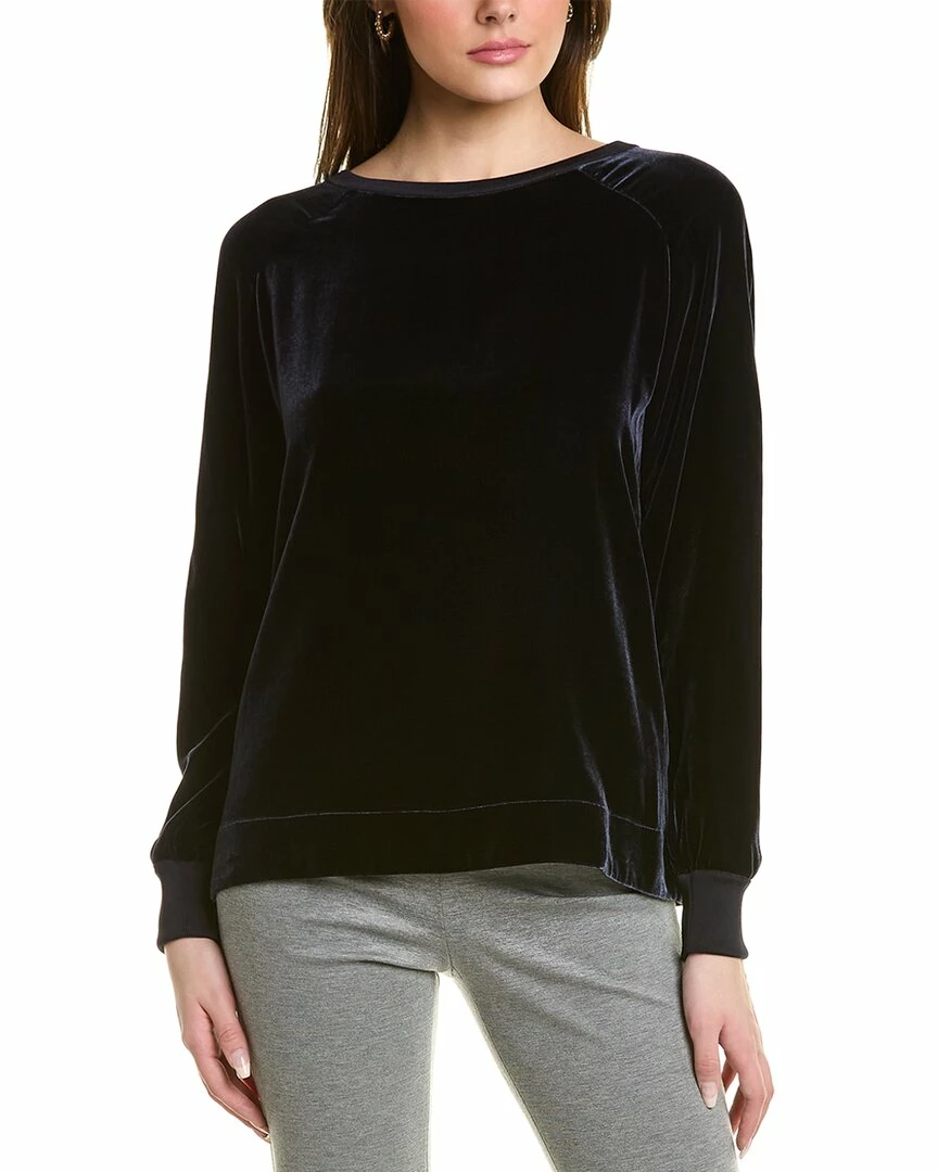 - Classic Calver Silk-Blend Top in ink with velvet design and ribbed trim