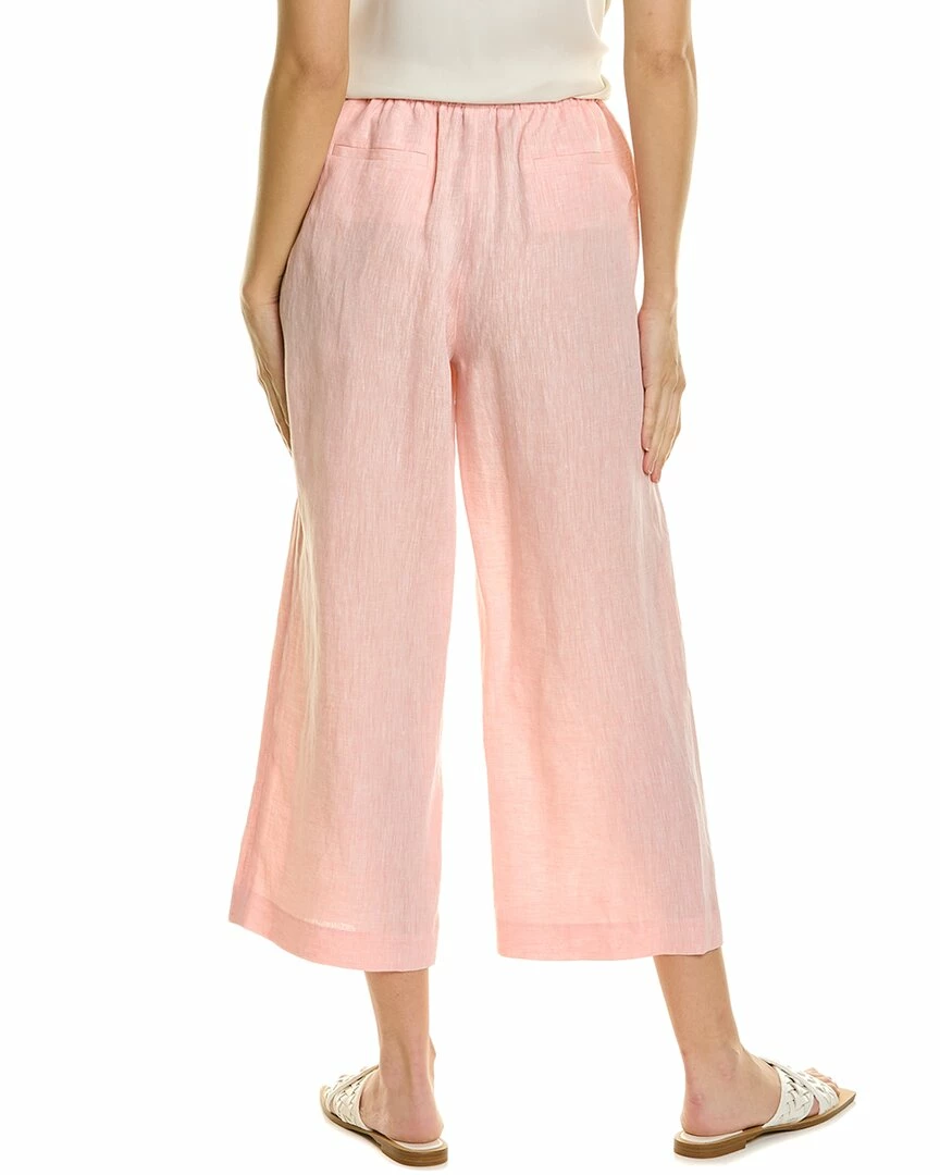 - Columbus Cropped Wide Leg Linen Pant in rich coral melange with dual side on-seam pockets, dual back welt pockets, and elasticized drawstring waistband