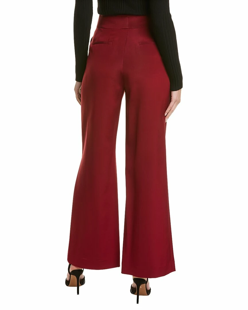 - Dalton High-Rise Full Leg Silk-Blend Pant in antique ruby with dual side on-seam pockets