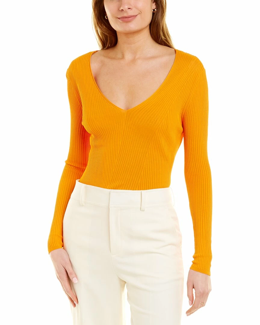 - Diagonal Rib Sweater in mango with ribbed knit design and V-neck