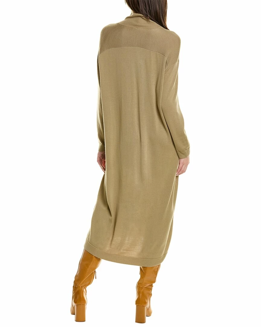 - Dropped-Shoulder Wool Sweaterdress in natural pistachio with turtleneck and ribbed trim