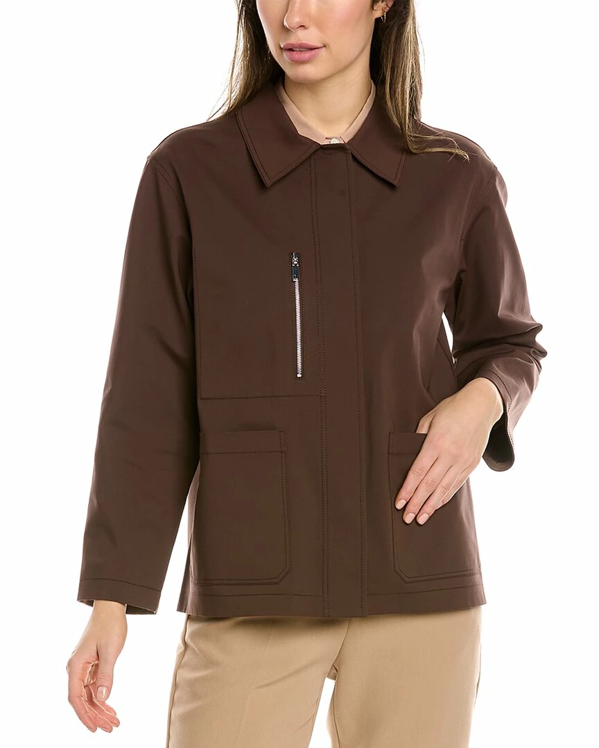 - Huntington Jacket in rustic brown with spread collar, zippered right chest pocket, and dual front pockets