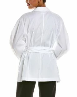 - Wexler Jacket with notch lapel, elbow-length blouson sleeves, elasticized cuffs, and self-tie sash at waist
