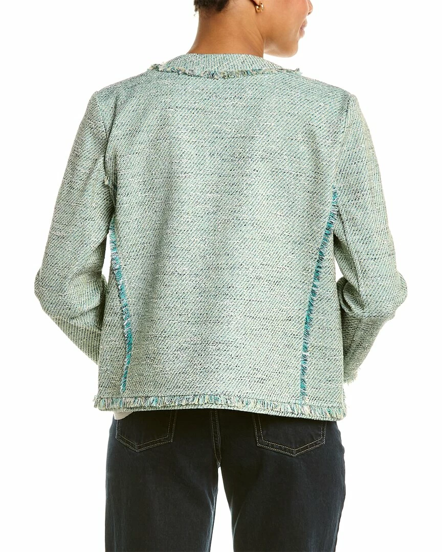 - Kennedy Jacket in Fiji multicolor with tweed design, fringe trim, and dual front pockets