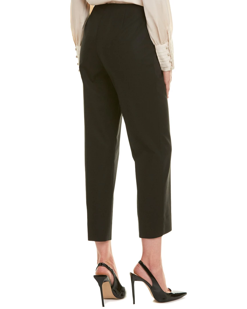 - Lexington Pant in black with waist darts, straight cropped leg, and vented hem