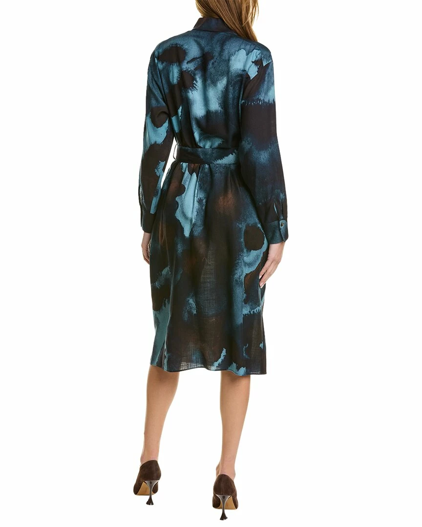 - Livia Wool & Silk-Blend Dress in smoked slate multi with spread collar, button cuffs, dual side on-seam pockets, and belted waist