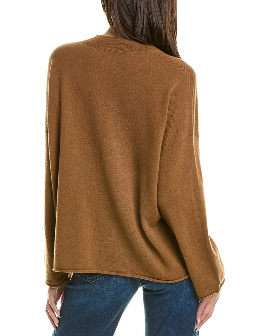 - Petite Dropped-Shoulder Cashmere Sweater in toffee with furled trim