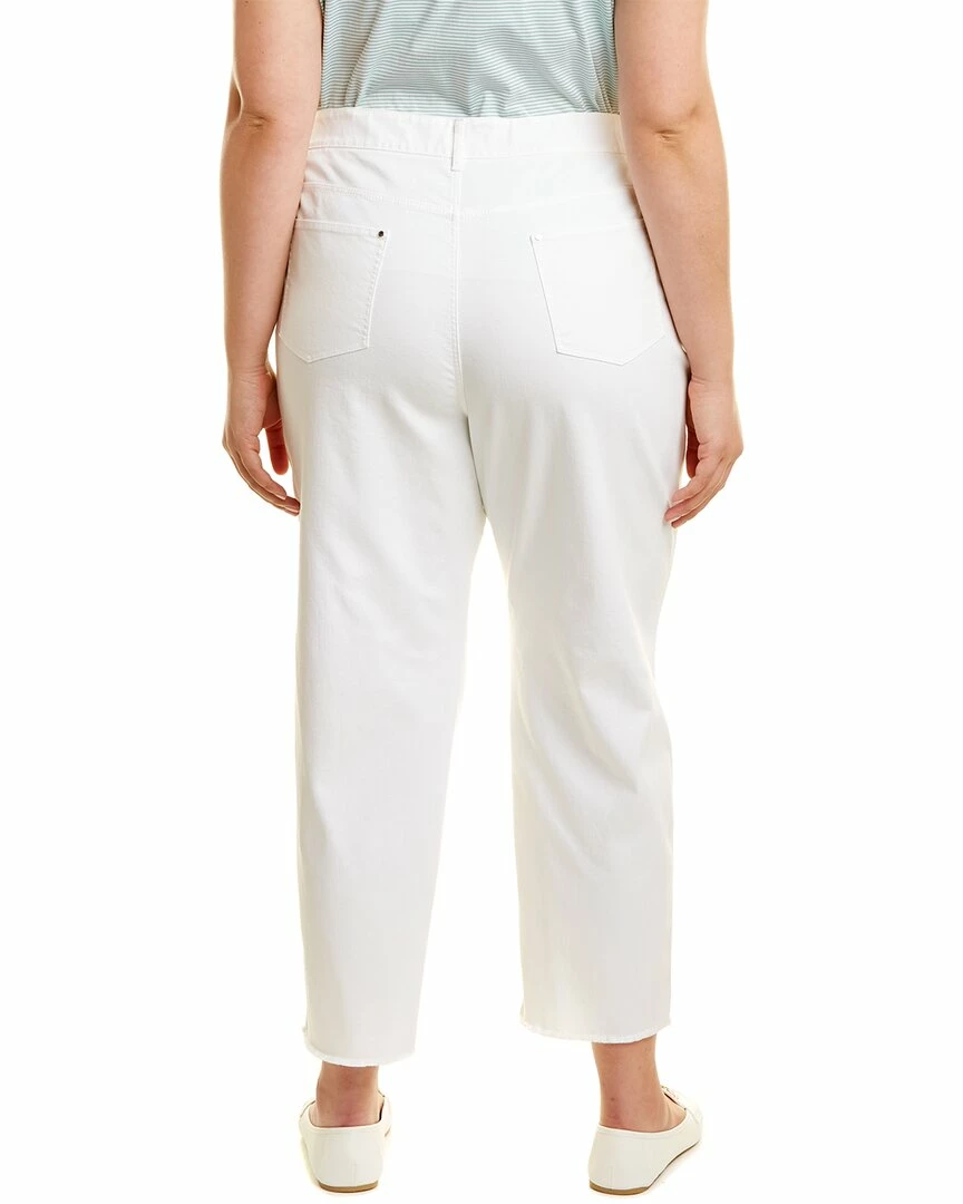 - Plus Mercer Straight in white with belt loops, frayed step hem, elasticized waist, and classic five-pocket styling