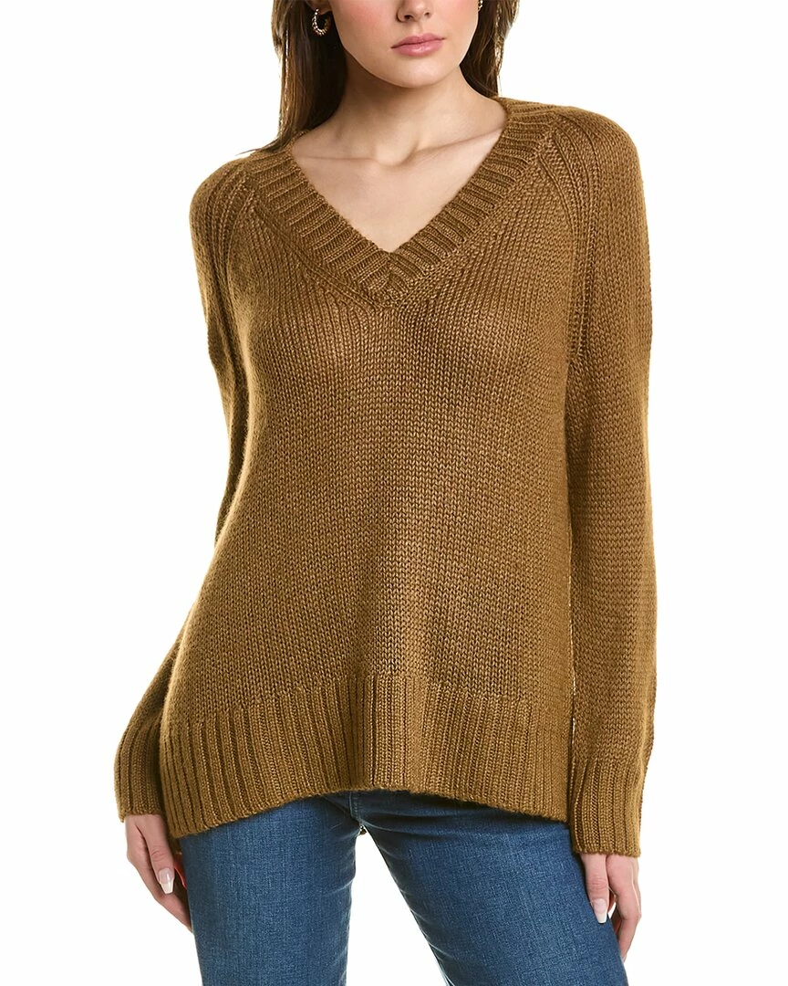 - Raglan Alpaca & Silk-Blend Sweater in soft acorn with V-neck and ribbed trim
