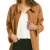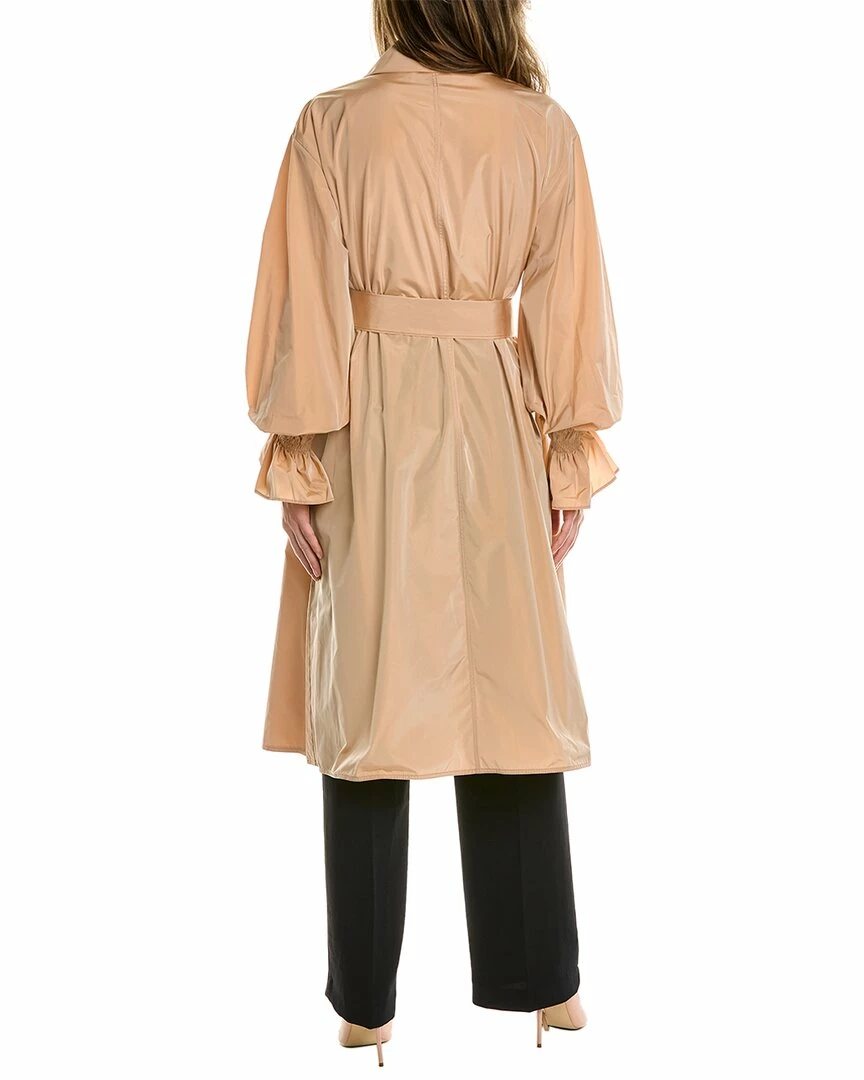 - Reilly Coat in tiramisu with notch lapel, voluminous dropped-shoulder sleeves, and smocked cuffs