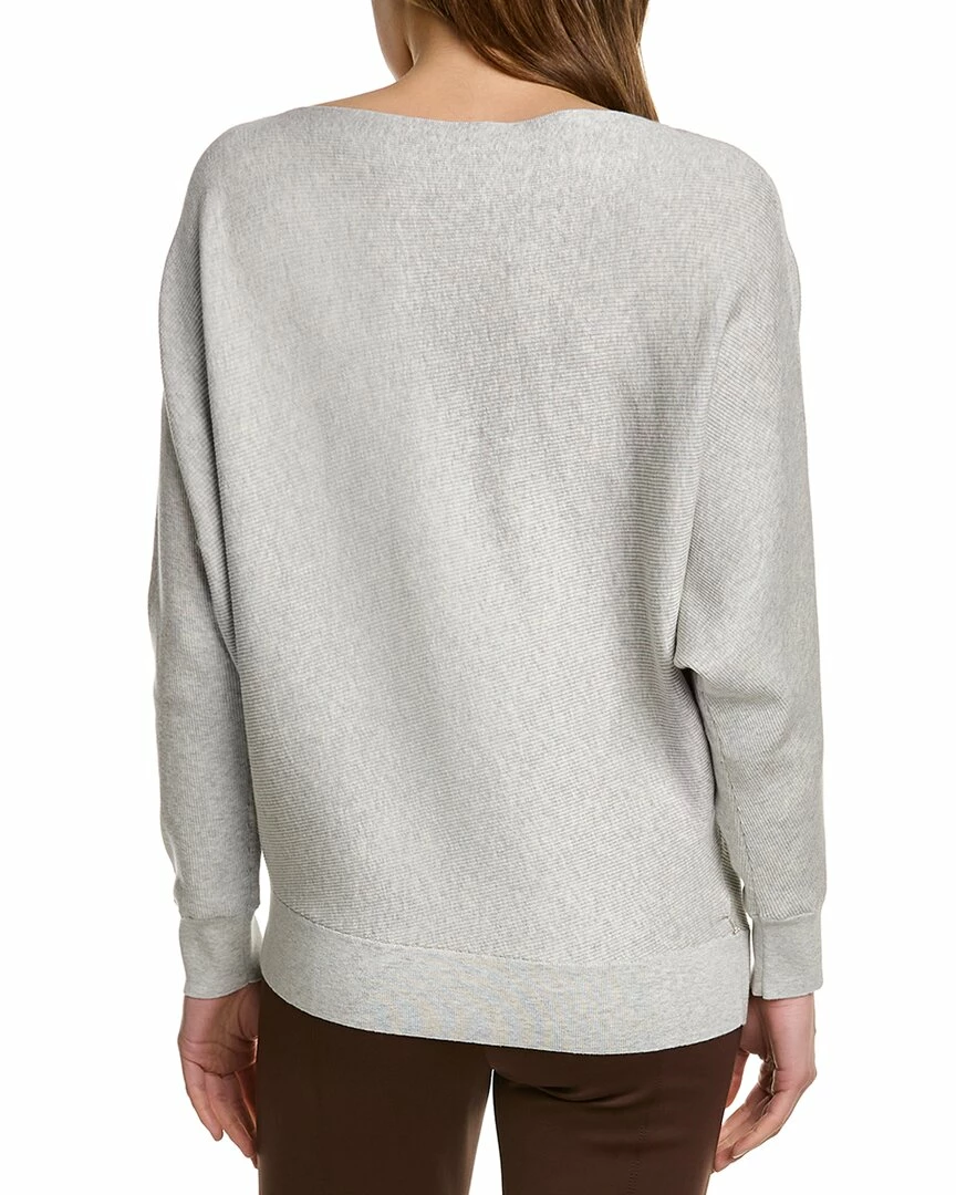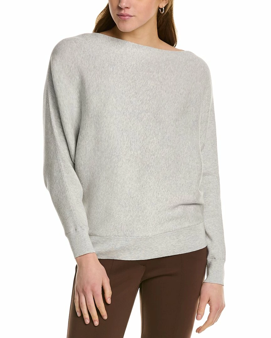 - Ribbed Asymmetric Silk-Blend Sweater in pebble melange with ribbed design, asymmetrical neckline and dolman sleeves