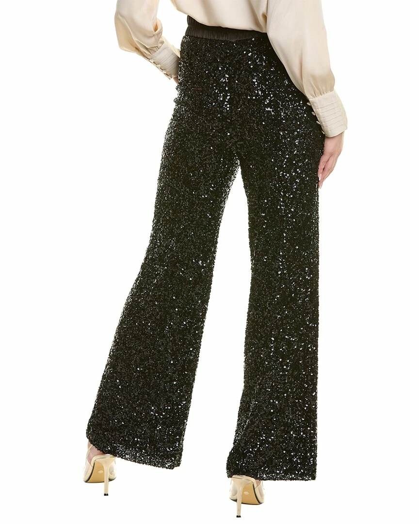 - Riverside Pant in black with sequined design and elasticized drawstring waistband