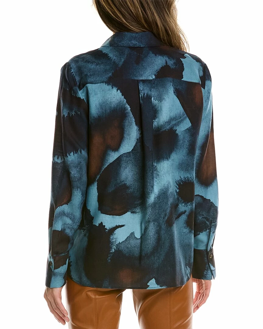 - Scottie Wool & Silk-Blend Blouse in smoked slate multicolor with spread collar and button cuffs