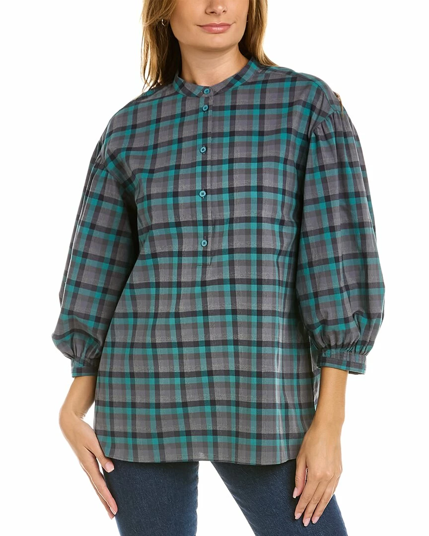 - Skye Blouse in nile multicolor with blouson sleeves and button cuffs